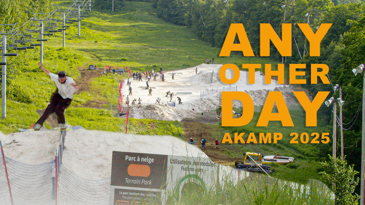 Snowboarding in Montreal in July? The annual pilgrimage north to Sommet Saint Sauveur brought together so many talented riders and friends. With a new park every day, riders were captured across two hours from two afternoons of camp to showcase the park’s evolution. Laid-back, easy slush laps with the rope tow assist from Tow Pro are just a slice of the Akamp experience. Featuring original music from Ely Campeanu and a 2 am drunk jam sesh by Ryan Sihler, Joey Leon, and Erin Alexander.